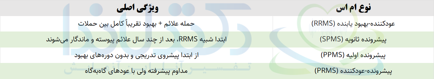 انواع بیماری ام اس