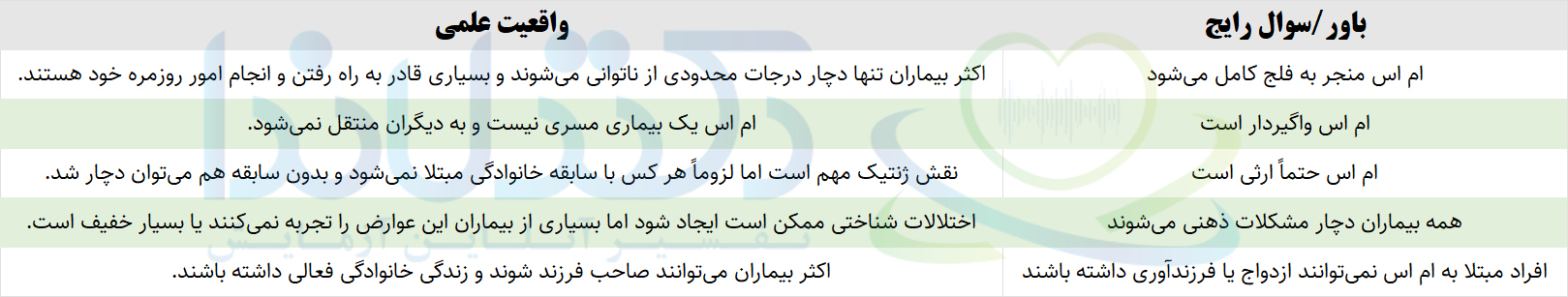 همراه ما باشید تا پرده از واقعیات و باورهای رایج درباره بیماری ام اس برداریم و به سوالات پرتکرار شما پاسخ دهیم.