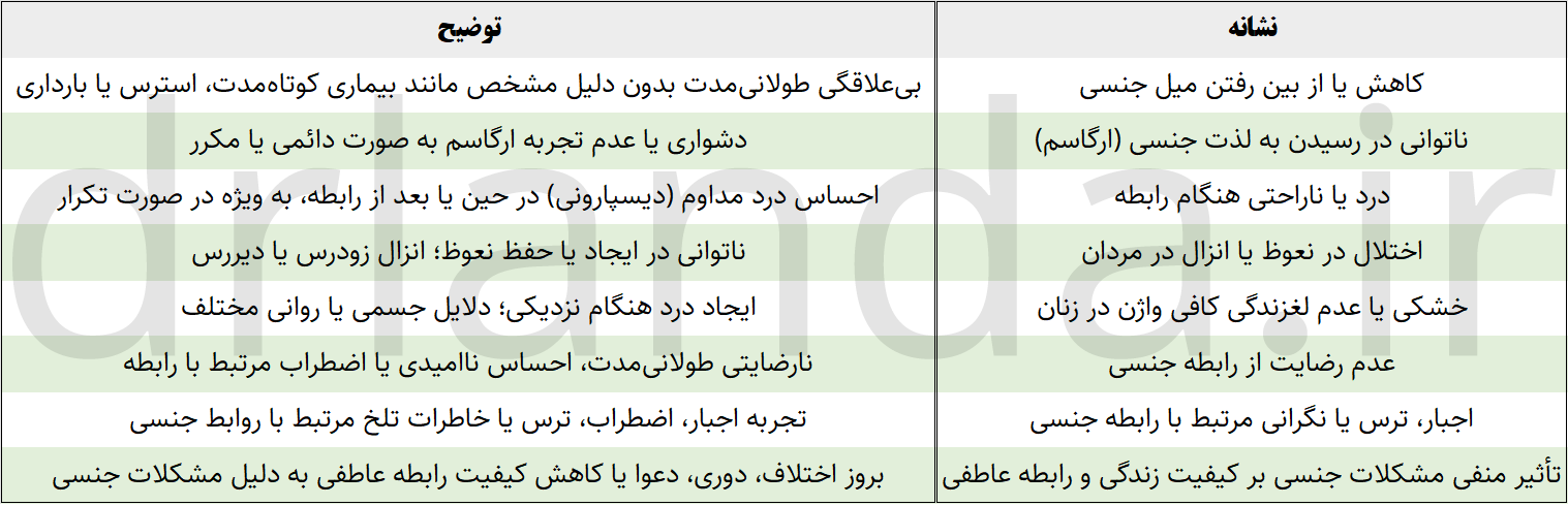 نشانههای اختلال یا مشکل در رابطه جنسی