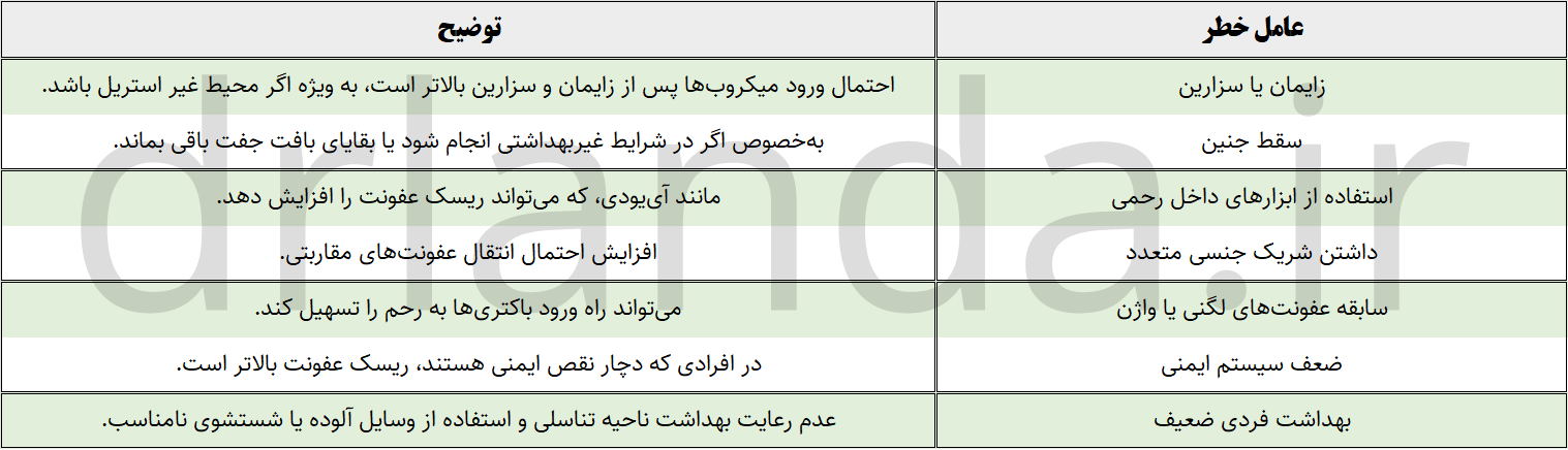 عوامل خطر ابتلا به عفونت رحم: